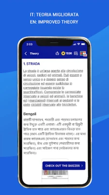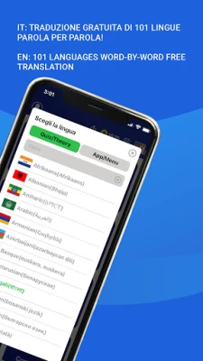 Ciò che distingue "Quiz Patente 2026" è il suo eccezionale supporto multilingue. Comprendendo le sfide linguistiche, l'app offre quiz e teoria tradotti in ben 105 lingue, da Afrikaans a Zulu. Questo significa che, indipendentemente dalla tua lingua madre, puoi affrontare i quiz e approfondire la teoria con la massima chiarezza e comprensione, superando ogni barriera linguistica. Dalle schede ministeriali ufficiali complete di manuale e traduzione, a un ripasso errori personalizzato che rafforza le tue lacune, ogni strumento è progettato per ottimizzare il tuo studio.
