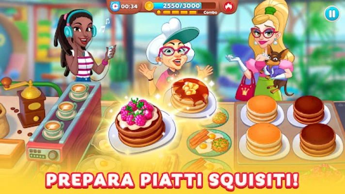 Ma l'avventura va oltre le ricette. Il mondo della ristorazione è in pericolo, minacciato dall'avido Ethan Shark, un magnate dei fast food che mira a sostituire l'autentica cucina con robot senz'anima. Solo tu, insieme a una squadra di abili restauratori, puoi fronteggiare questa minaccia. Rivolgi il destino di bar e ristoranti nelle tue mani, aiutando chef emergenti a trovare il loro stile distintivo e a superare le sfide poste da critici spietati, difendendo l'anima della vera gastronomia.
